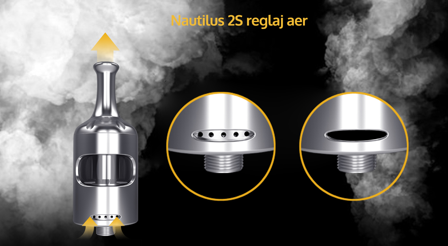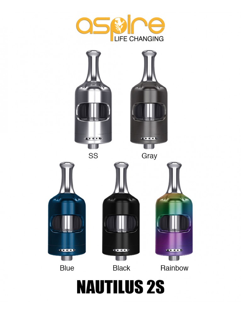 Atomizor Nautilus 2S de la Aspire are design curbat si armonios, o capacitate de 2.6ml lichid si poate fi folosit cu 3 tipuri de rezistente Nautilus BVC: 0.4 ohm (DTL) si 1.8 ohm BVC (MTL) ce sunt incluse in pachet, si varianta mesh de 0.7ohm (DTL). Atomizorul are un mecanism childproof atat pentru alimentarea cu lichid, cat si la schimbarea rezistentei.