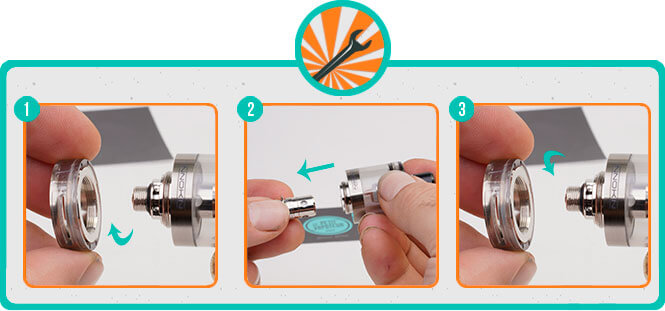 - Rezistenta din interiorul atomizorului poate fi schimbata prin extragerea si inlocuirea acesteia prin partea inferioara a atomizorului.