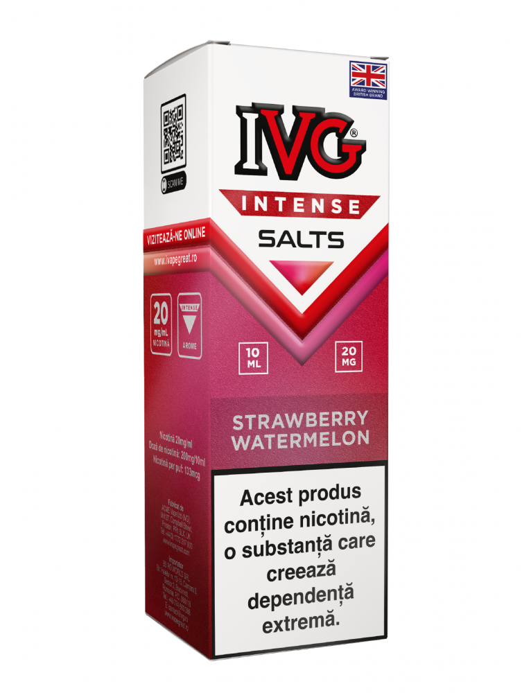 Lichid pentru tigara electronica IVG Intense Salt 10ml 20mg - Strawberry Watermelon.