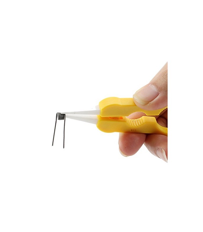 Penseta dispune de varfuri ceramice, rezistente la caldura, perfecte pentru utilizatorii ce obisnuiesc sa-si construiasca propriile rezistente. De asemenea, partea opusa a pensetei, construita din policarbonat, poate fi utilizata pe post de cheie, pentru desfacerea cu usurinta a atomizoarelor blocate.