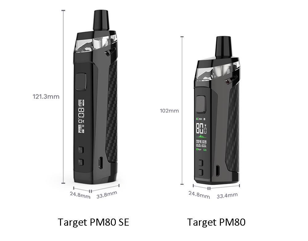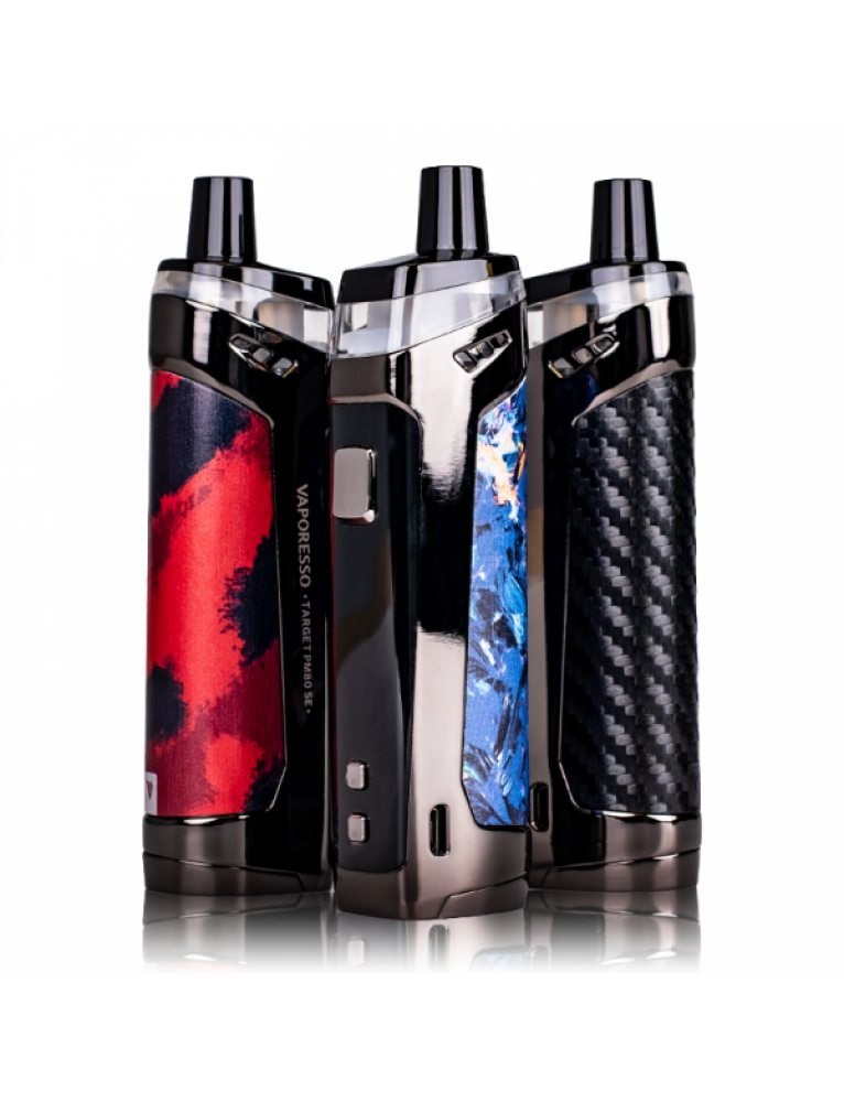 • Modelul PM80 SE face parte din seria Vaporesso Target, ce mai include si PM30 (baterie integrata de 1200mAh) si PM80 SE (baterie integrata de 2000mAh)