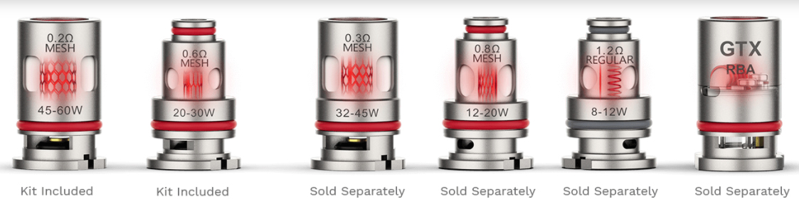 - Rezistente incluse in pachet: GTX Mesh de 0.2 Ohm (45–60W) si GTX Mesh de 0.3 Ohm (32-45W)